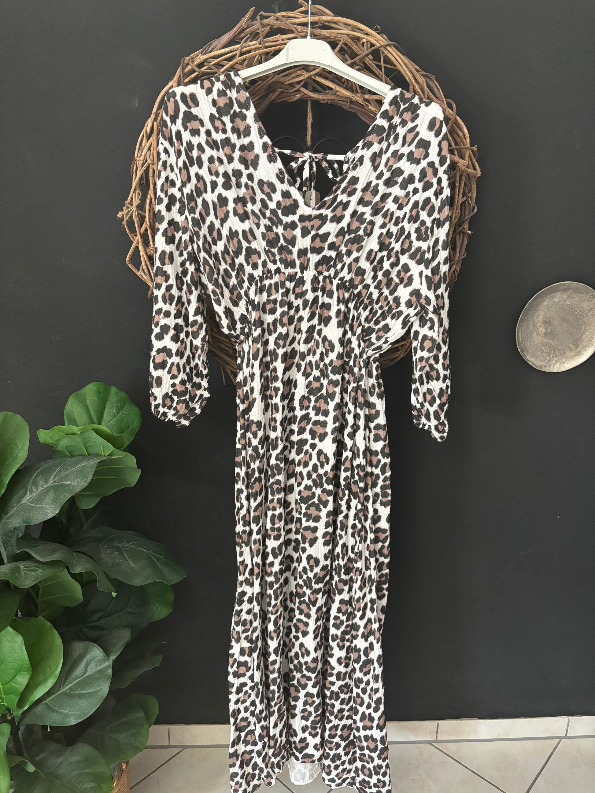 Musselin Kleid Leo Leoprint Hippie Ibiza Boho Sommerkleid